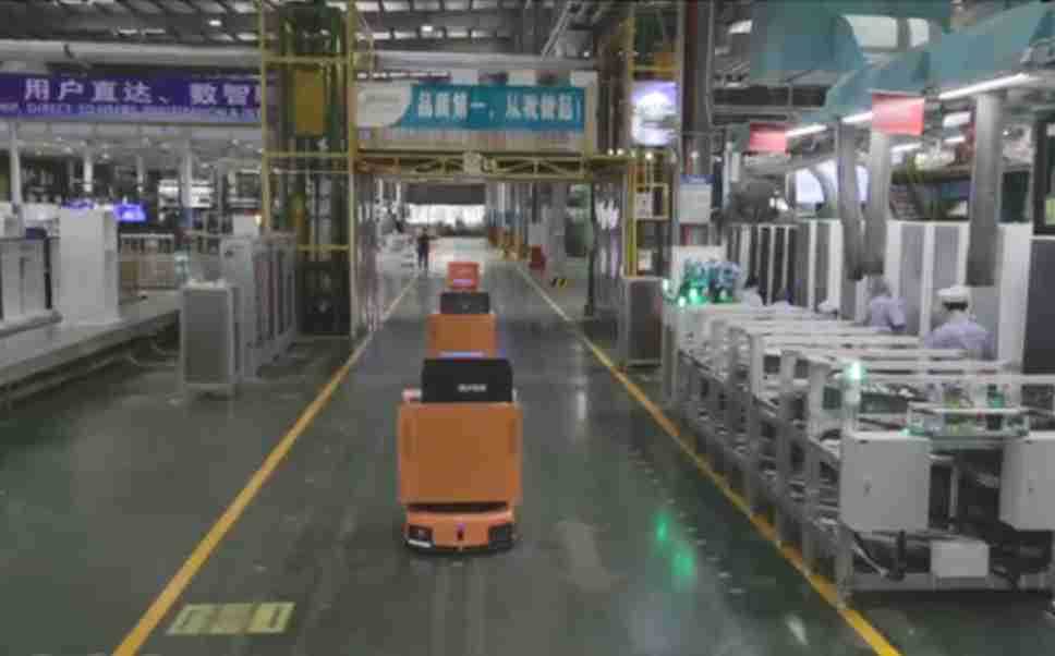 为车载冰箱物流配送打造的智能解决方案,,,包含产中物流通过潜伏举升AMR搬运至线边,,产后成品物流智能仓储,,,流程包含产中物流智能齐套入库,,,,线边安灯叫料AMR智能配送至线边,,,,成品入库、、出库,,,通过无人堆高车机器人,,智能仓储管理替代人工作业管理,,,实现更高存储、、、更高效率、、、更具柔性化的解决方案。。。