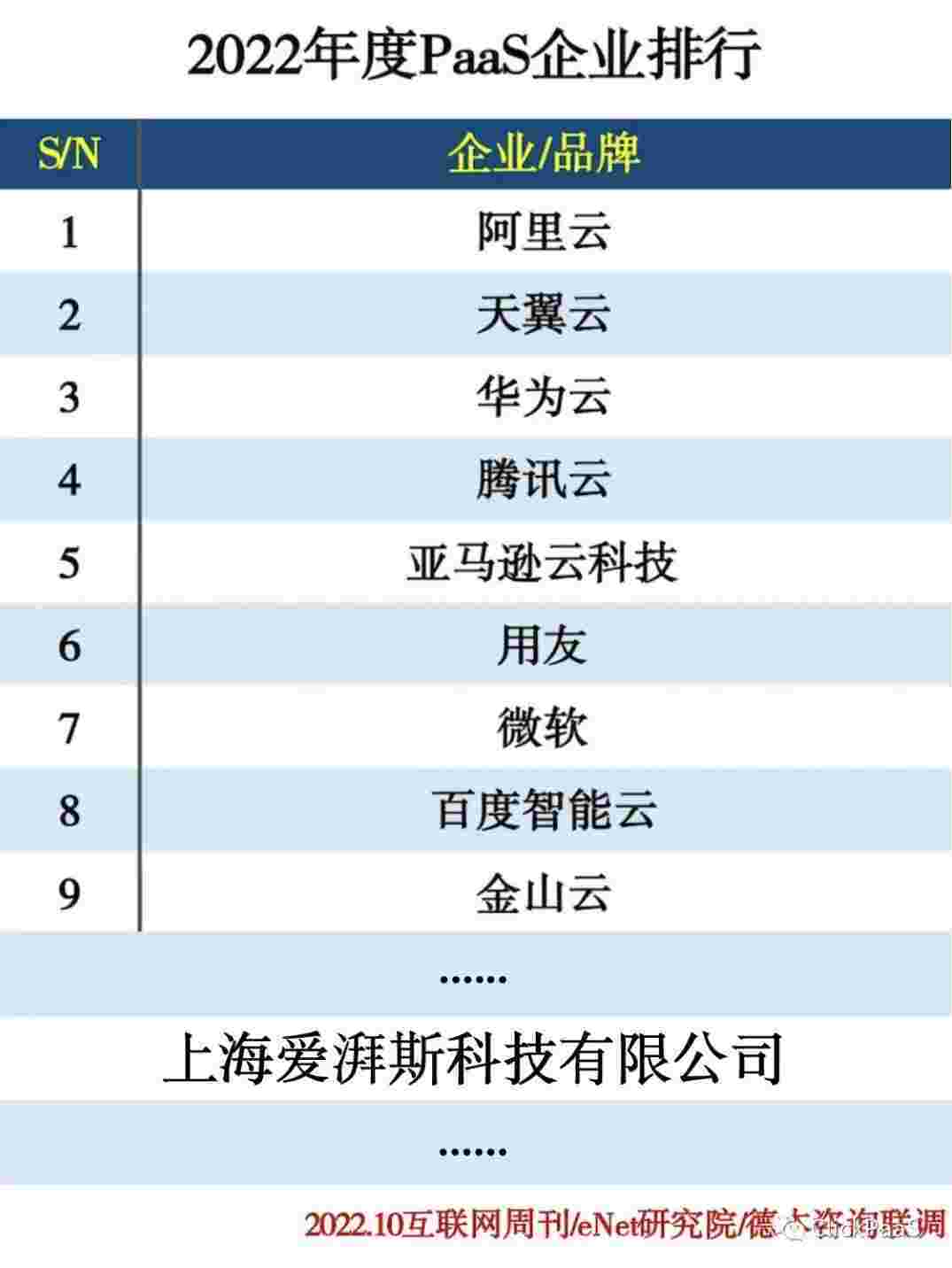 近日,,,,,,Internet Deep发布了由互联网周刊、、、、、、、、、、eNet研究院、、、、、、德本咨询联合调查的”2022年度PaaS企业排行“榜单,,,,,,,,,,,,,上海爱湃斯科技有限公司(以下简称NO钱包),,,,,,,,,,,,,,,,凭借强大的建模能力,,,,,,,,,,,,为各行业头部客户解决复杂业务需求的实践经验以及强大的集成扩展能力,,,,,,,,,,入选2022年度PaaS企业排行TOP 50。。。。。。。。。。